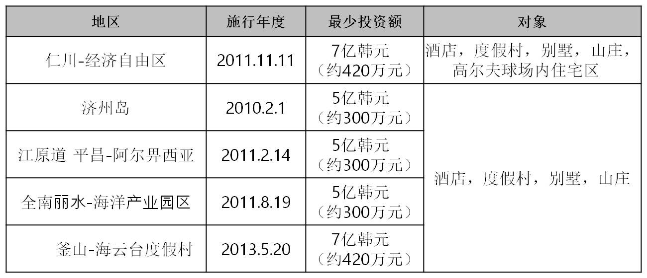 : 投资50万美金或5亿韩元以上,以休养为目标的休养型度假公寓、度假村、家庭式旅店、